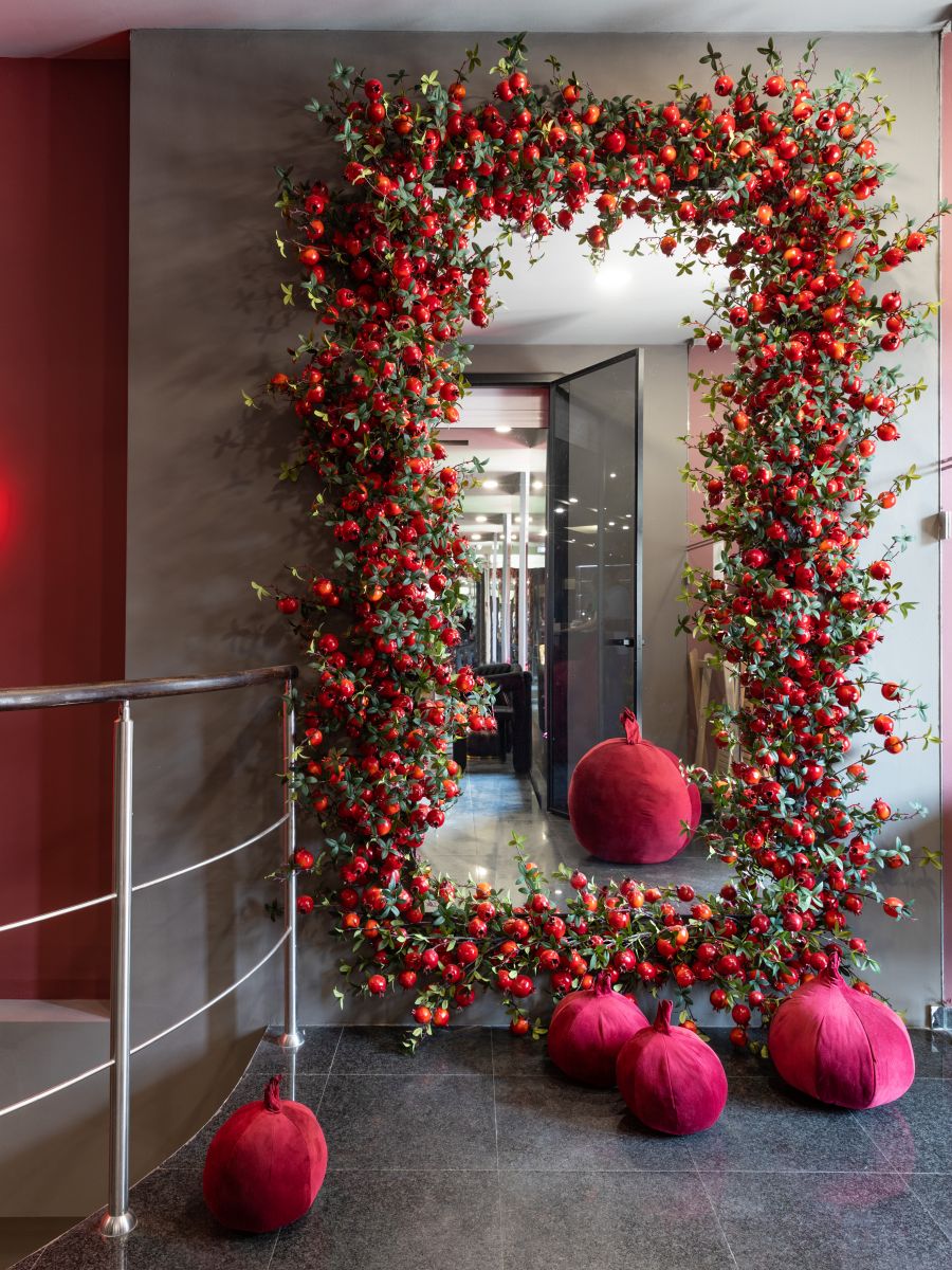 Эта композиция с гранатами (Арт.35110) словно драгоценный камень, мгновенно притягивает взгляд и завораживает своей красотой и является одной из тех, что моментально покоряют сердца наших клиентов. Возможно, дизайнер выбрала этот фрукт, чтобы подчеркнуть изобилие и богатство культур, представленных в бутике. А может быть, гранат символизирует энергию, которая вдохновляет на создание прекрасного. В любом случае, этот сюжет стал тем самым финальным штрихом, который объединил все элементы декора, придав интерьеру завершенность и гармонию!