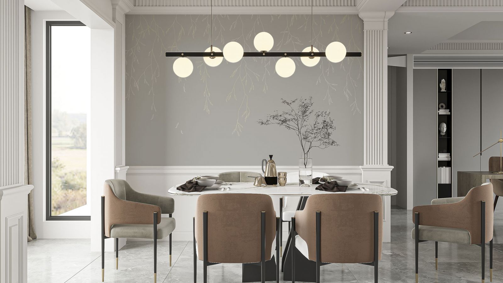 Гостиная всегда была и будет визитной карточкой любого дома. Именно в ней проводят больше всего времени и принимают гостей. Поставьте элегантный мягкий диван и кресла с декоративными подушками, рядом журнальный столик на одной фигурной ножке. Сердцем всего пространства может выступать камин, как настоящий, так и декоративный. А над его порталом повесьте большое зеркало в изящной раме с позолотой или картину. На столике и этажерке могут стоять подсвечники, канделябры.