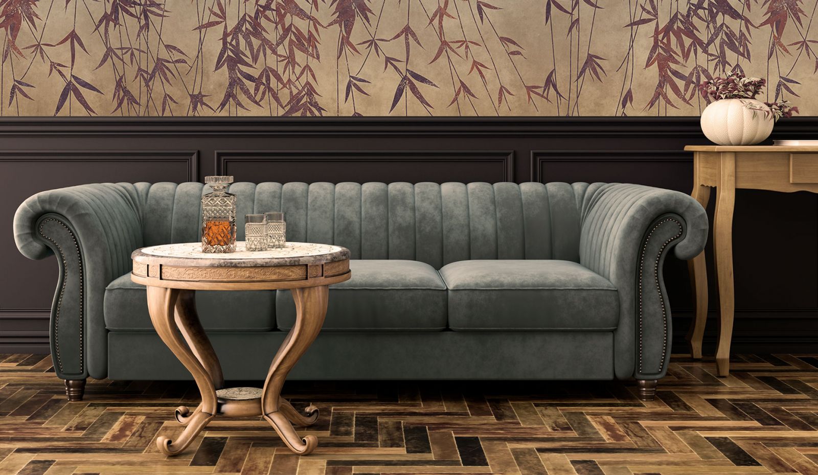 Мебель является неотъемлемой частью в создании винтажной атмосферы. Она должна переносить нас в другую эпоху, быть её отголоском. В винтажном интерьере могут сочетаться предметы мебели различных десятилетий прошлого, главное, чтобы они гармонировали друг с другом. Старинные трюмо, трельяжи, массивные серванты, стеллажи, диваны. Это может быть как хорошо сохранившаяся раритетная мебель, так и восстановленная или стилизованная. Главное, чтобы мебель передавала дух винтажности и историзма – кованые элементы, высокие ножки, узорная ковка, цветочный орнамент, благородные потёртости и трещины.