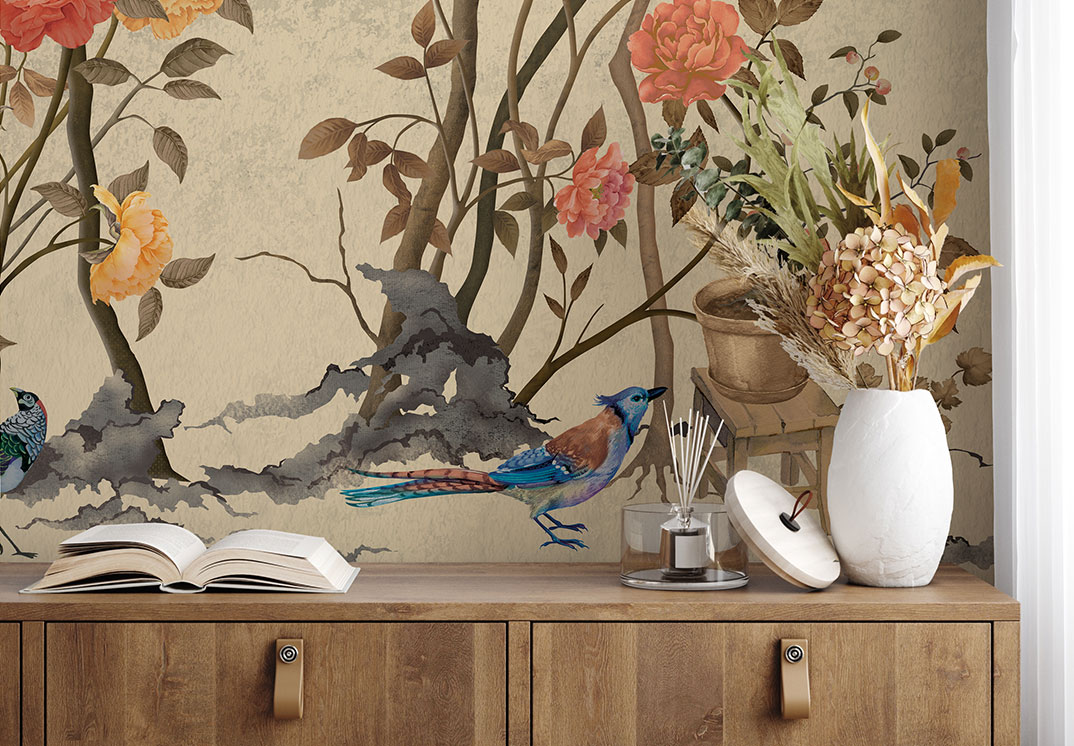 По сути, шинуазри — это "европейский взгляд на китайский стиль", фантазии европейцев о Китае. Этот стиль зародился в 17 веке, когда европейские мастера пытались повторить китайские товары. Коллекция «Шинуазри» - это изысканность и экзотика одновременно. Нежные сюжеты с изображением цветов и птиц на фотообоях и фресках от компании ОРТОГРАФ привнесут в Ваше пространство уют и гармонию.